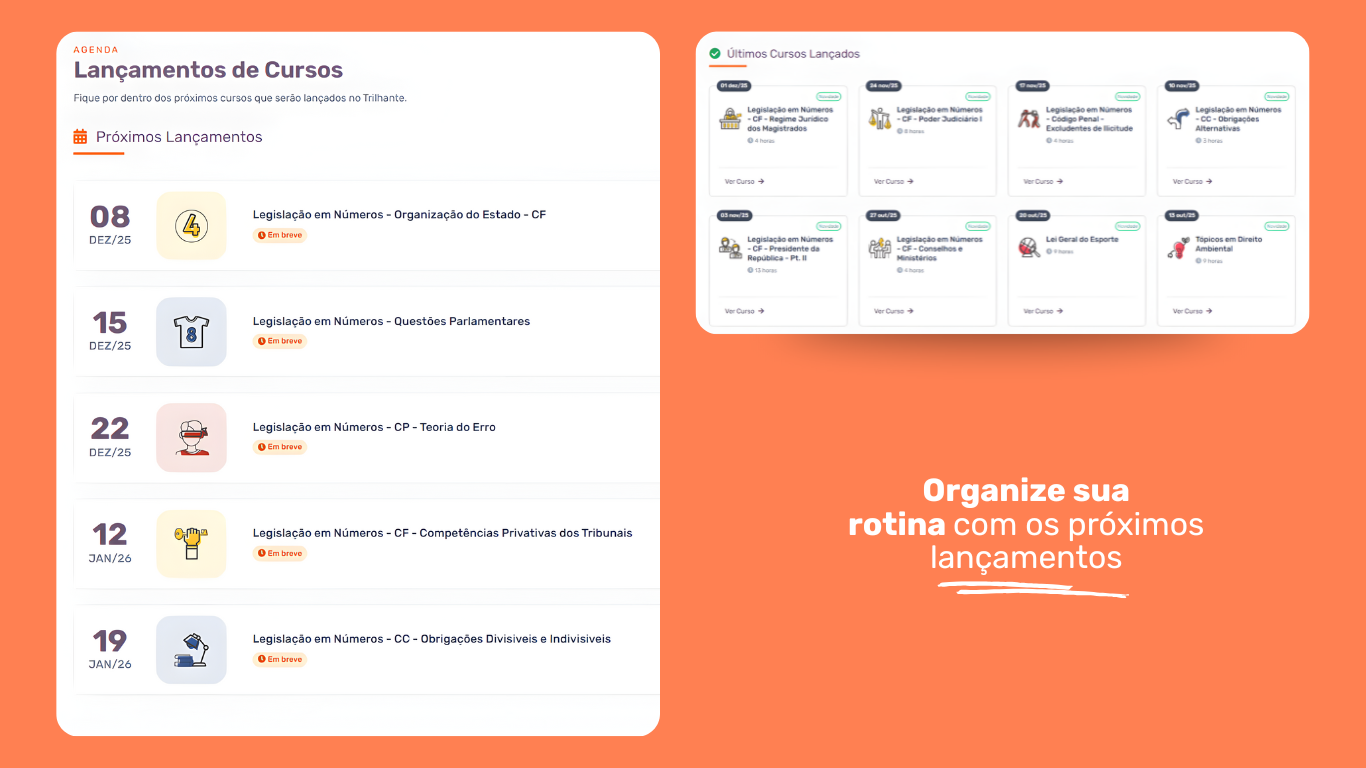 Agenda de Lançamentos: Agora você consegue visualizar facilmente os próximos cursos e se programar com as datas de estreia.