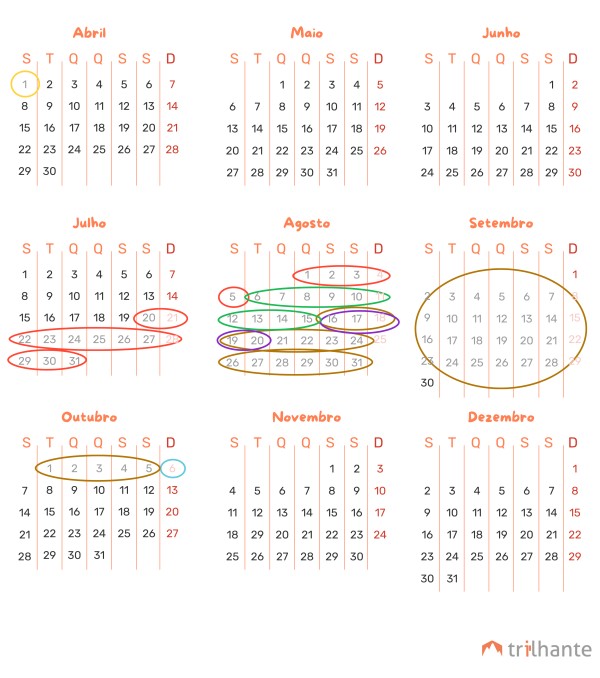 1/04 - fim do prazo para filiação partidária; 20/07 a 5/08 - convenções partidárias; 6/08 a 15/08 - registro de candidaturas; 16/08 a 20/08 - impugnação de candidaturas; 16/08 a 05/10 - propaganda eleitoral; 6/10 - primeiro turno das eleições